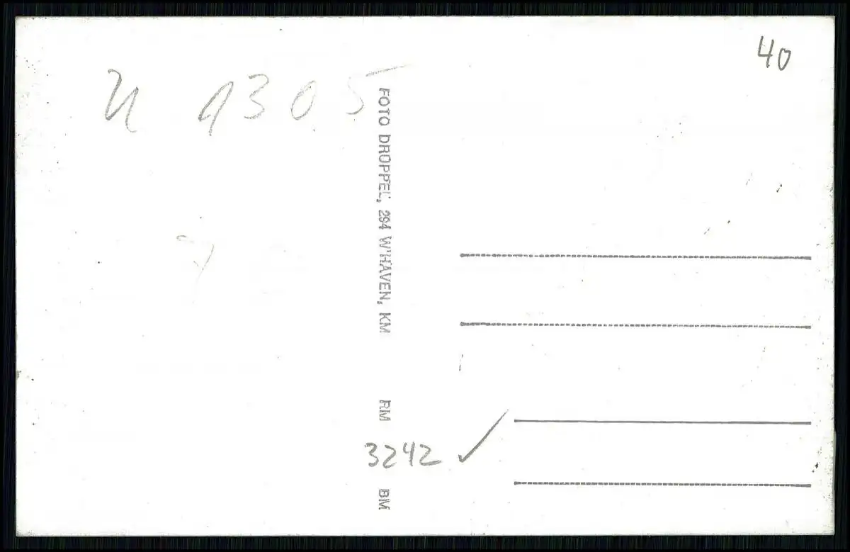 Auf der Rückseite befindet sich eine Beschriftung sowie der Aufdruck 'Foto Drüppel, Wilhelmshaven'.
