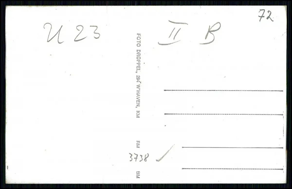 Auf der Rückseite befindet sich eine Beschriftung sowie der Aufdruck 'Foto Drüppel, Wilhelmshaven'.