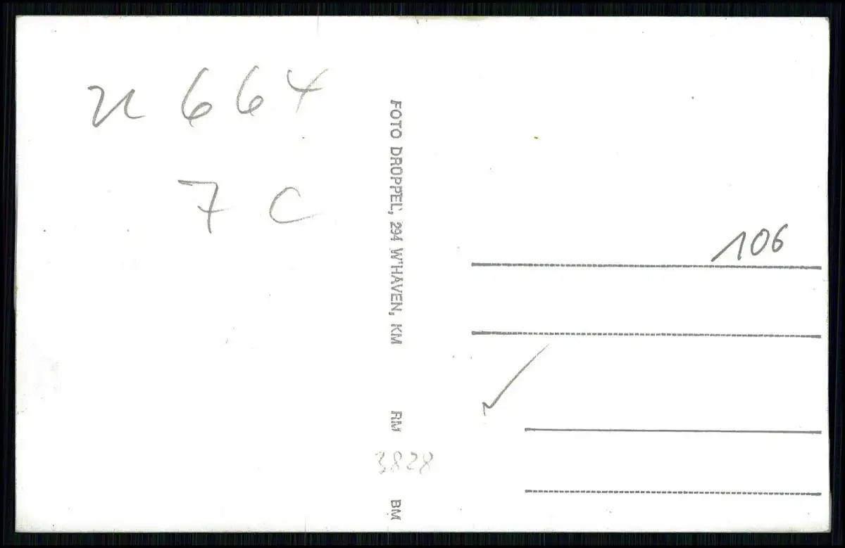 Auf der Rückseite befindet sich eine Beschriftung sowie der Aufdruck 'Foto Drüppel, Wilhelmshaven'.