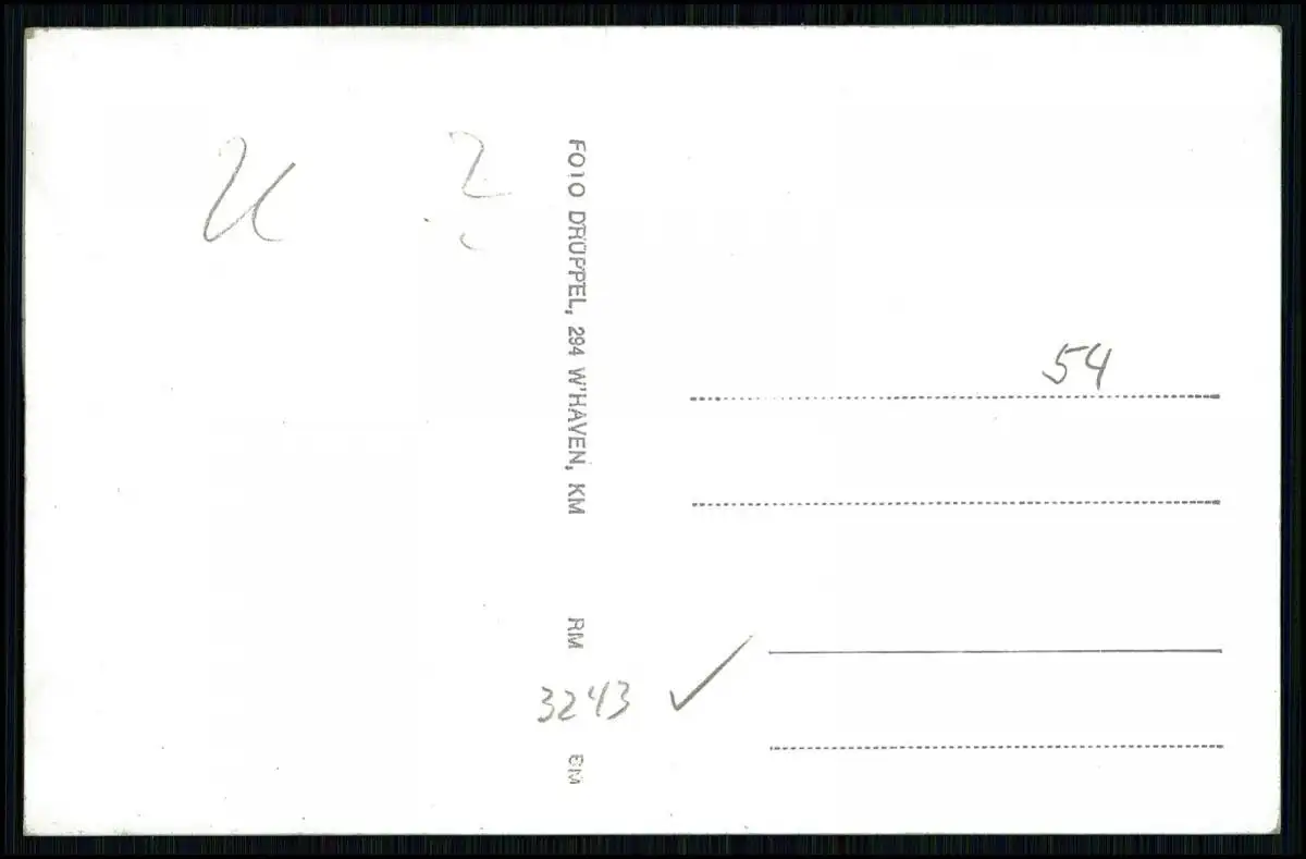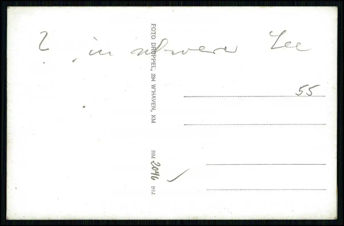 Auf der Rückseite befindet sich eine Beschriftung sowie der Aufdruck 'Foto Drüppel, Wilhelmshaven'.