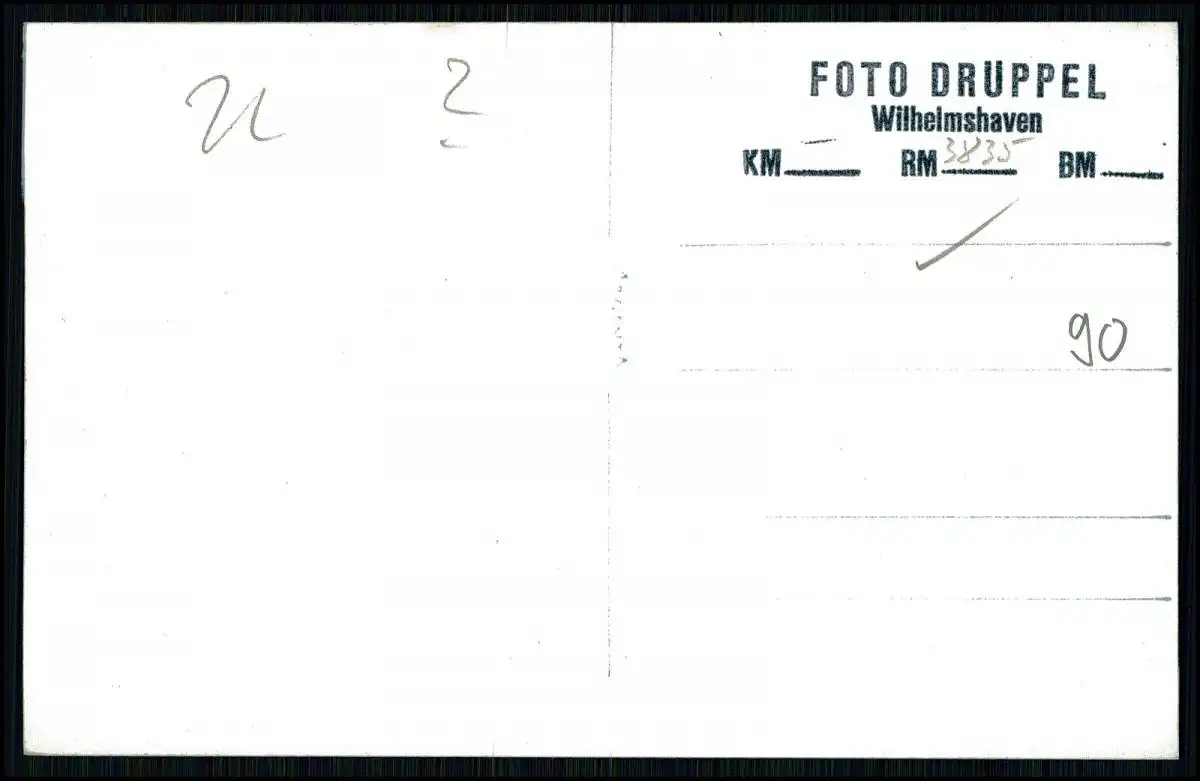 Auf der Rückseite befindet sich eine Beschriftung sowie der Aufdruck 'Foto Drüppel, Wilhelmshaven'.