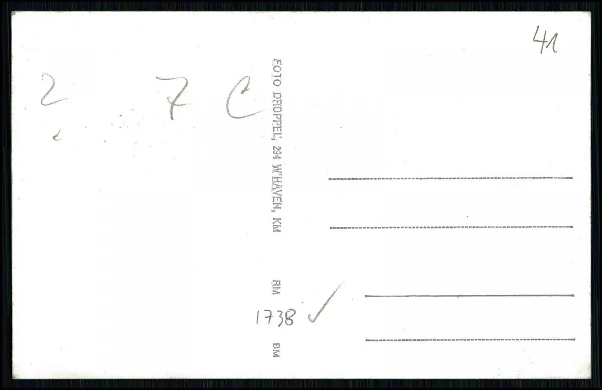 Auf der Rückseite befindet sich eine Beschriftung sowie der Aufdruck 'Foto Drüppel, Wilhelmshaven'.