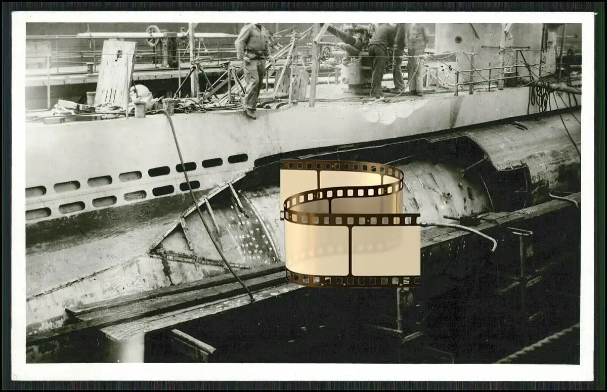 Drüppel Foto AK U-Boot Unterseeboot U VII 7 C im Dock aufgeschnittene Außenhaut