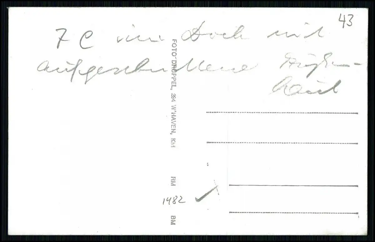 Auf der Rückseite befindet sich eine Beschriftung sowie der Aufdruck 'Foto Drüppel, Wilhelmshaven'.