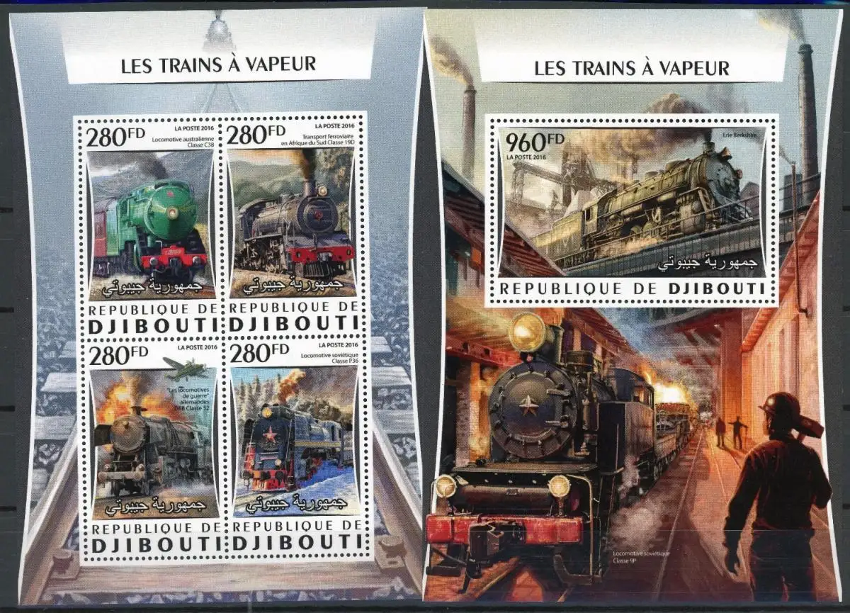Dschibuti 1064-1067 + Block 216 postfrisch Eisenbahn #IX024