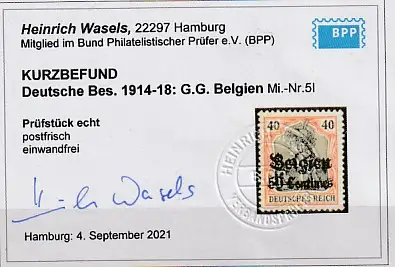 Dt. Bes. Belgien Nr. 5 I ** (MNH), Befund Wasels