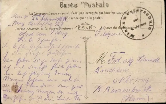 Dt. Feldpost, Minenwerferschule der 4. Armee, Res. Inf. Rgt. 229, I WK