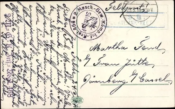 Dt. Feldpost, Truppenstempel, 2. Masch. Gew. Komp. Inf. Regt. 468, I WK