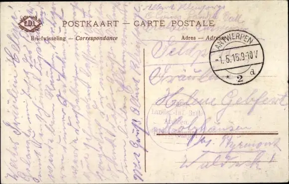 Dt. Feldpost, Truppenstempel, Antwerpen, Landsturm Infanterie Batl. Arolsen, I WK