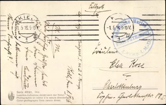 Dt. Feldpost, Truppenstempel, Kiel, Kaiserliche Marine 3. Komp. 1. Matrosen Division, I WK