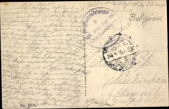 Dt. Feldpost, Truppenstempel, Leib Grenadier Regiment 100, Leib Kompagnie, I WK
