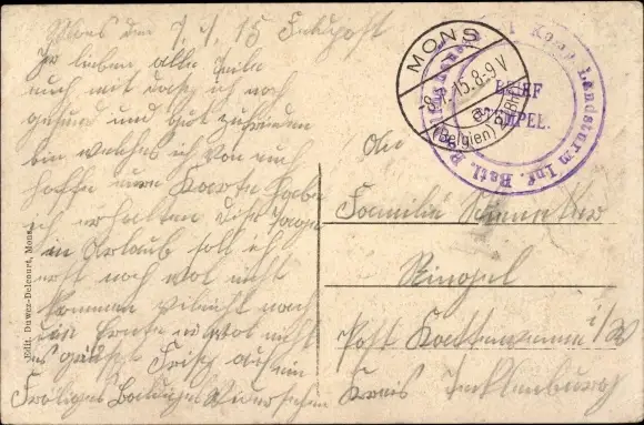 Dt. Feldpost, Truppenstempel, Mons, Landsturm Inf. Batl. Recklinghausen I. Komp., I WK