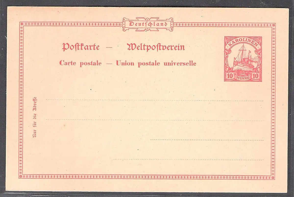 Dt. Kolonien Karolinen Ganzsache Mi.-Nr. P 8 Probedruck ungebraucht.