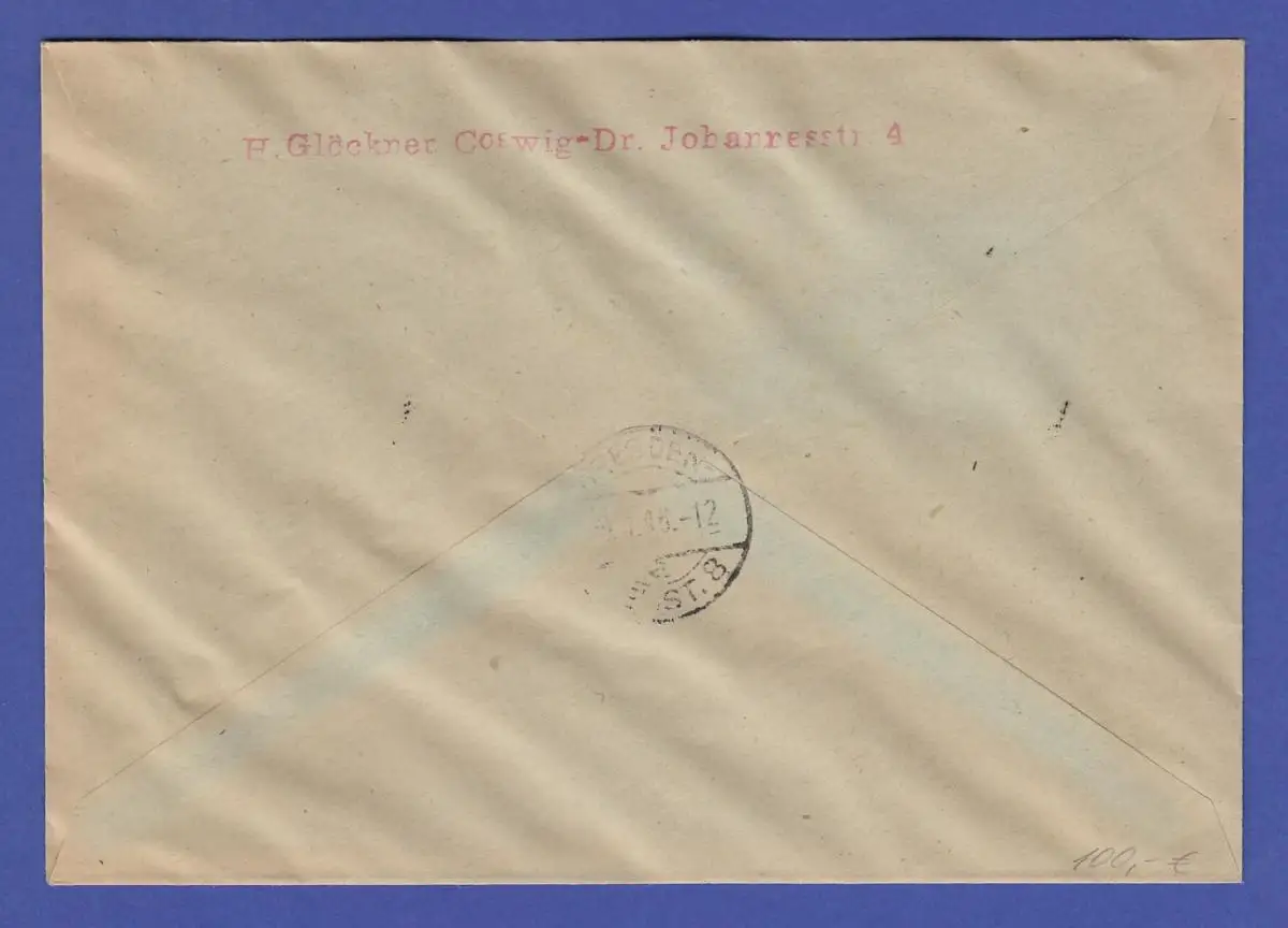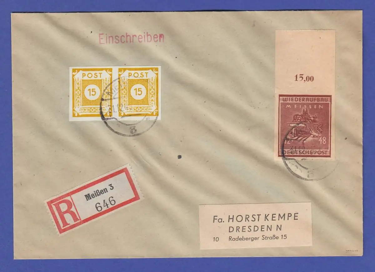 Dt. Lokalausgaben Meissen Mi.-Nr. 38 a B in MIF auf portoger. R-Brief 31.12.45