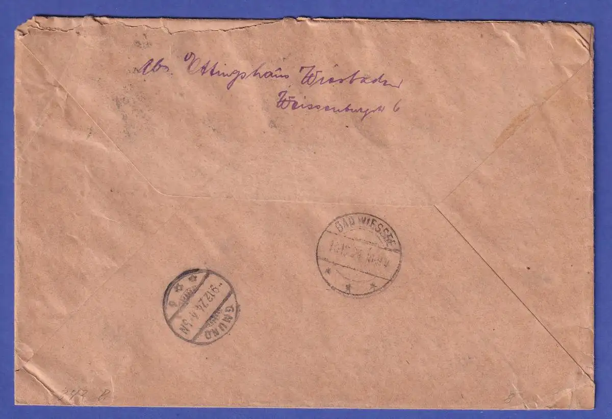 Dt. Reich 1924 Mi.-Nr. 342 P als EF auf R-Brief O MAINZ nach Wiessee
