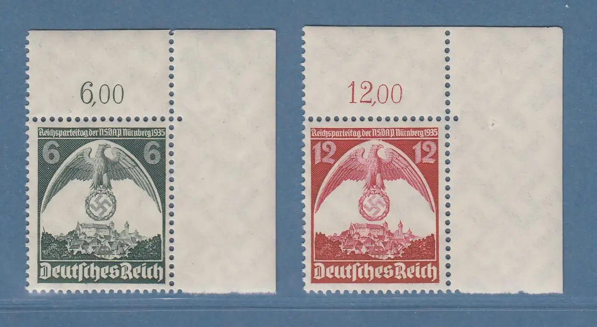 Dt. Reich 1935 Reichsparteitag Mi.-Nr. 586-587 Eckrandstücke OR **
