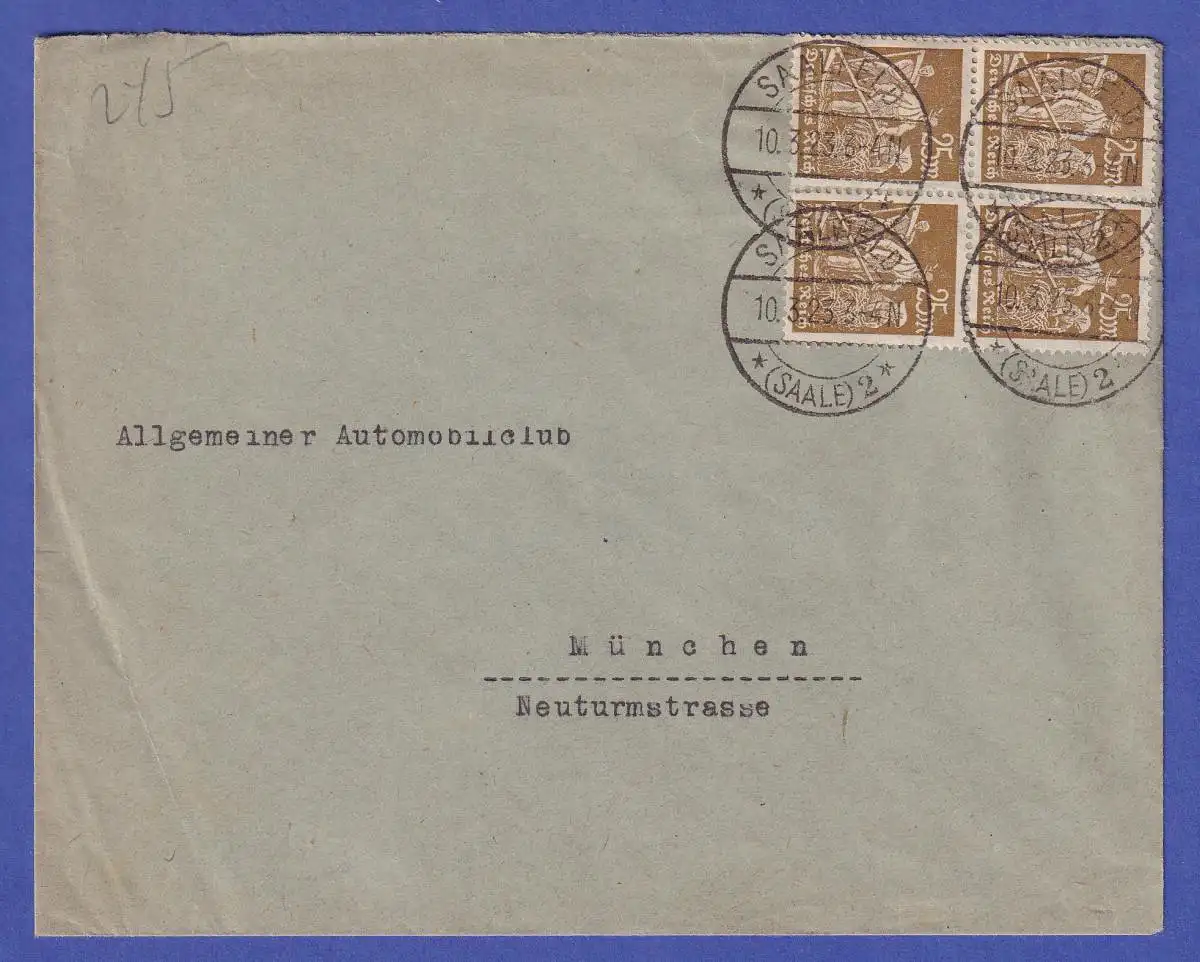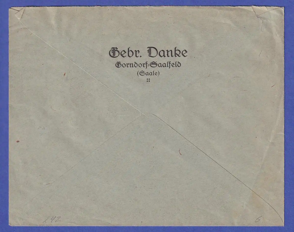 Dt. Reich 25 Mark Mi.-Nr. 242 als MEF auf Brief O SAALFELD