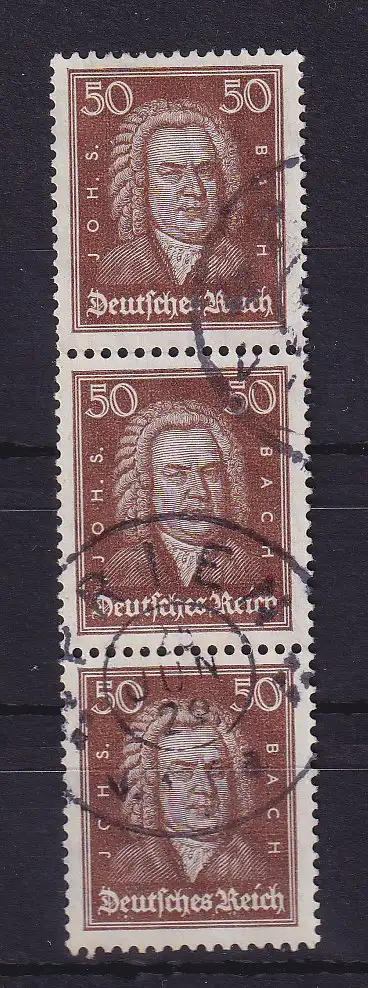 Dt. Reich 50Pfg J. S. Bach Mi-Nr. 396 senkr. Dreierstreifen O PRIEN