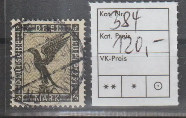Dt. Reich: Flugpost-Adler, Höchstwert 3 M, gest., gepr.