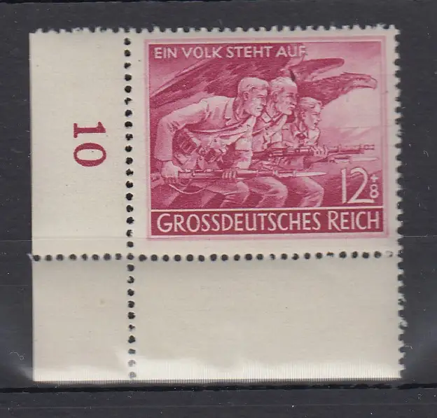 Dt. Reich, Mi.-Nr. 908 Volkssturm-Marke Eckrandstück ** mit seltenem PLF VI