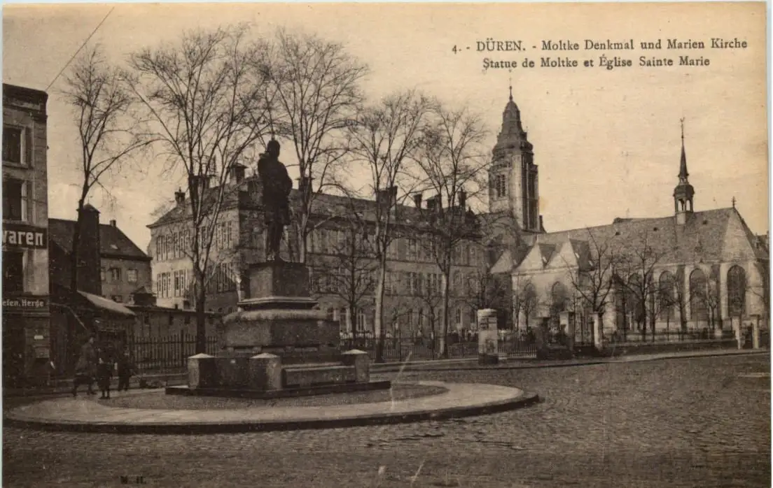 Düren, Moltke-Denkmal und Marienkirche -514352