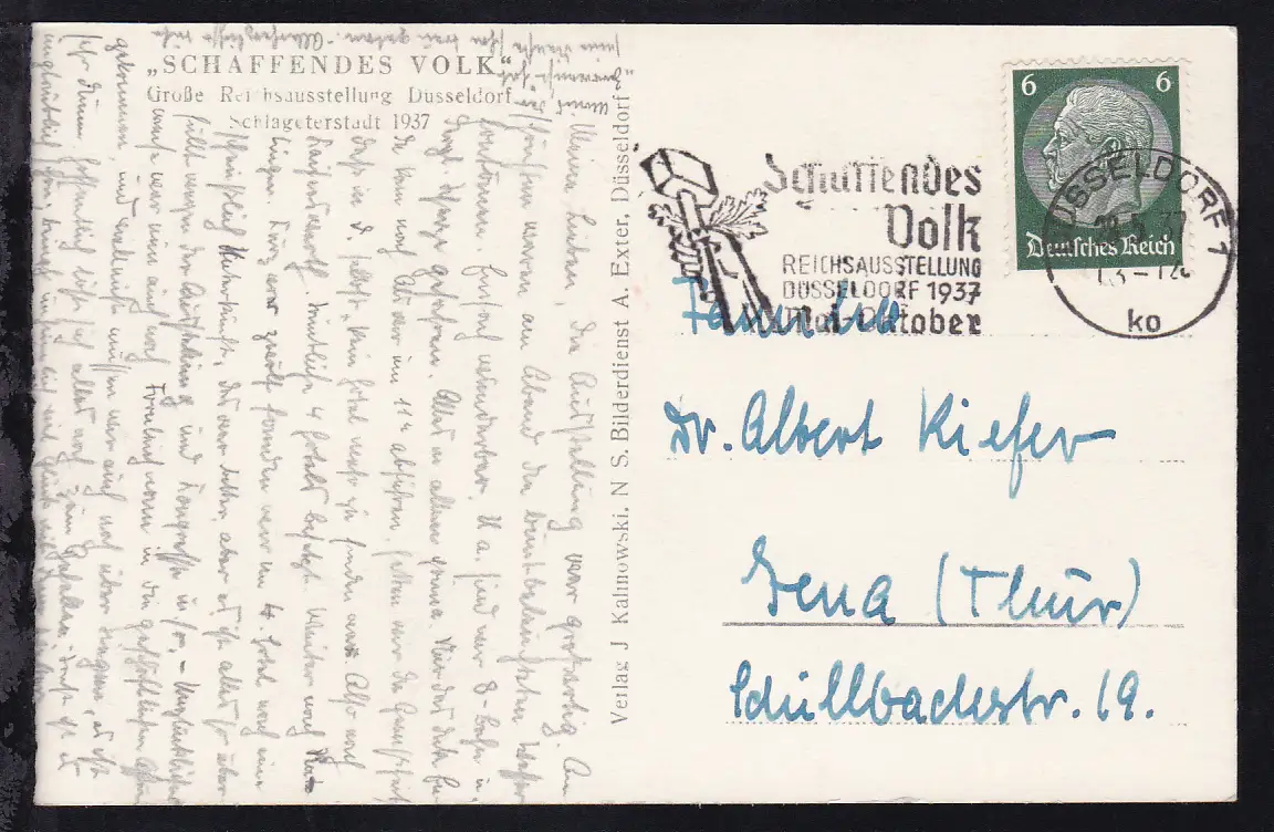 Düsseldorf Maschinenstempel DÜSSELDORF 1 ko 28.5.37