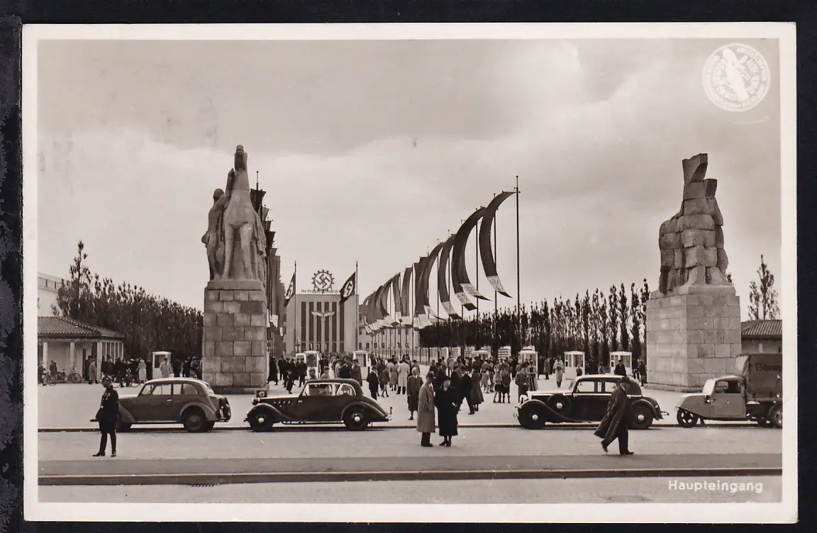 Schaffendes Volk REICHSAUSSTELLUNG DÜSSELDORF 1937 Mai-Oktober auf Ausstellungs-AK (Haupteingang)