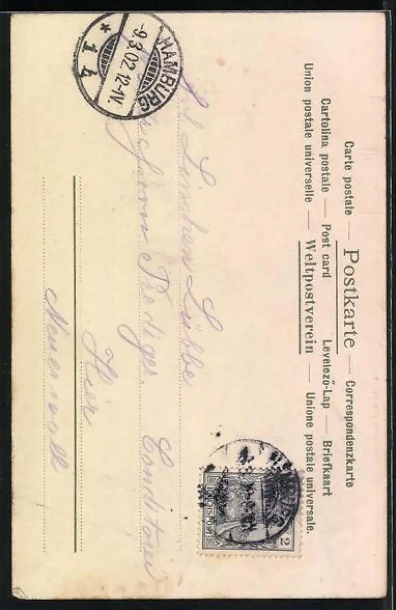 alte Ansichtskarte, gelaufen 1902, guter Zustand
