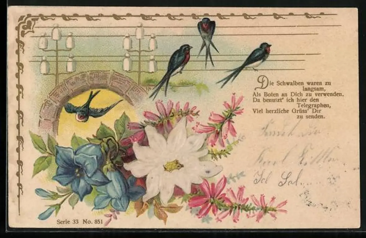 Duft-AK Die Schwalben waren zu Langsam..., Alpenblumen mit Duft