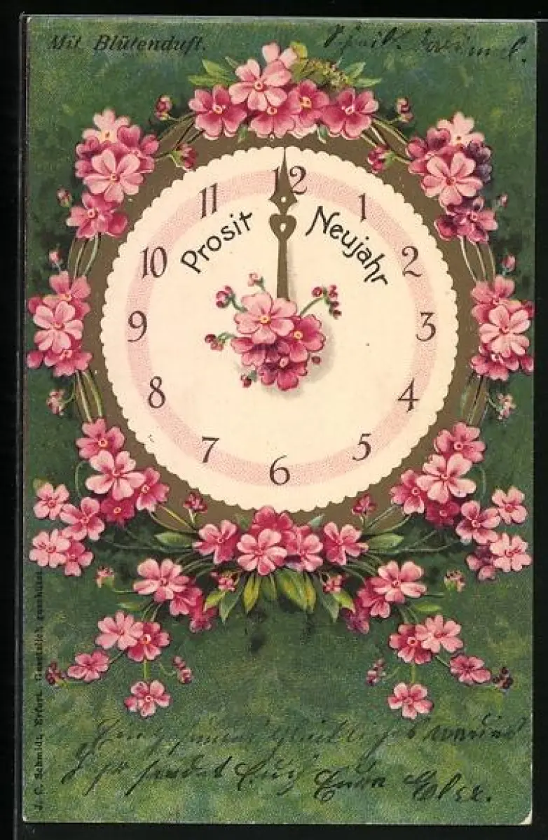 Duft-AK Uhr mit Vergissmeinnicht und Blütenduft