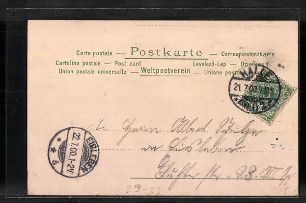 alte Ansichtskarte, gelaufen 1900, guter Zustand