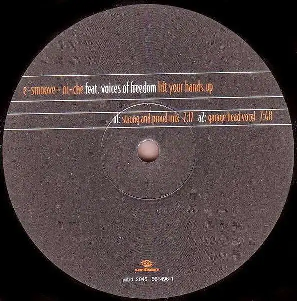 12" Maxi E-Smoove & Ni-Che feat. Voices Of Freedom - Lift Your Hands Up, Zustand Platte VG+ Hülle M-; Made in Germany 1999 Urban URBDJ 2045, Tracks Strong & Proud Mix 7:17, Garage Head Vocal 7:48, Soulforce Remix 7:23, FloWapella 4:57