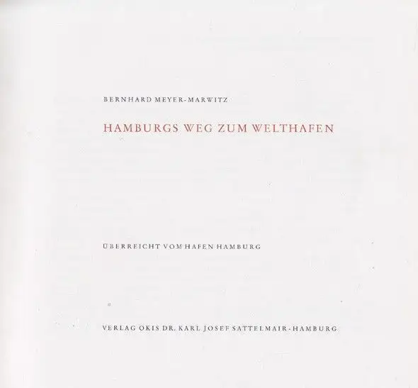 Bemerkungen: Erschien anläßlich des 75-jährigen Bestehens der Hamburg Hafen- u. Lagerhaus-AG. - Dazu: MEYER-MARWITZ, Bernhard. Hamburgs Weg zum Welthafen. 2. Aufl. Ebda. 1960. 220 S. Mit zahlr. photogr. Abb. u. Taf. OLn. Zus. in OSchuber.