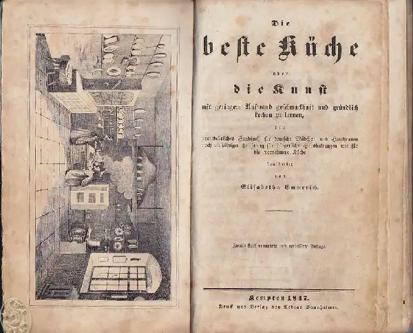 Bemerkungen: Hinterer Vorsatz mit zeitgenöss. hs. Kochrezepten beschrieben. Interessant das Frontisp. mit einer anschaulichen Darstellung einer "modernen" Küche.