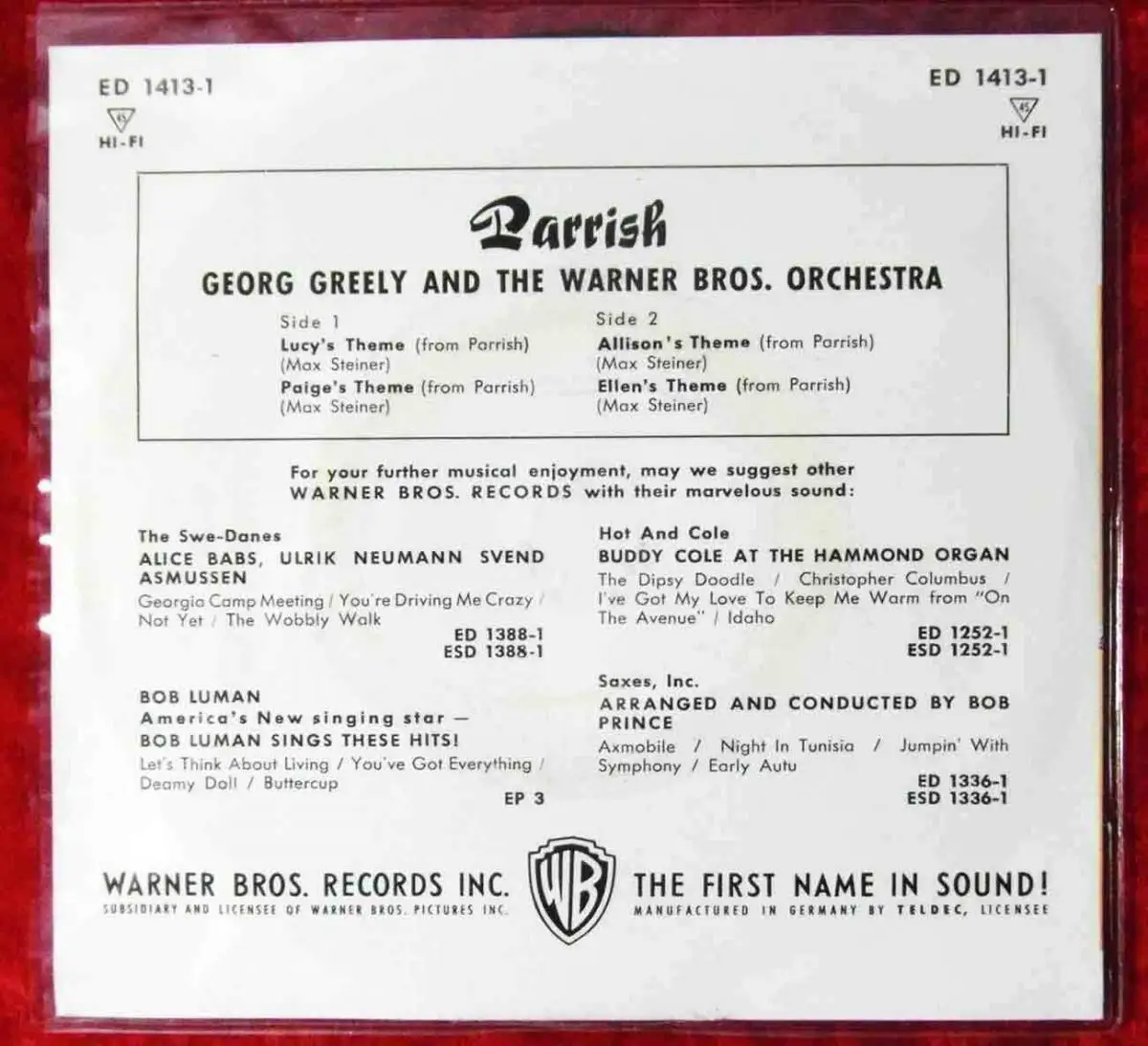 EP Max Steiner: Parrish (Warner Bros. ED 1413-1) D