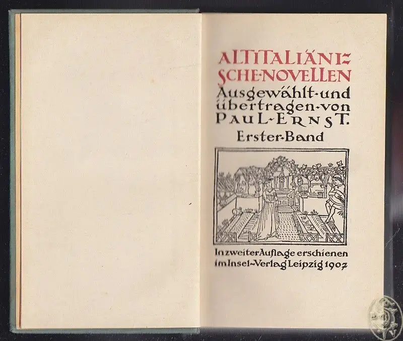 Lpz., Insel 1907. 2. Aufl. 2 Bde. kl.-8°. 1 Bl., 306; 2 Bll., 316 (1) S. Mit je 1 Titelvign. OPbd. Mit Rückensch.