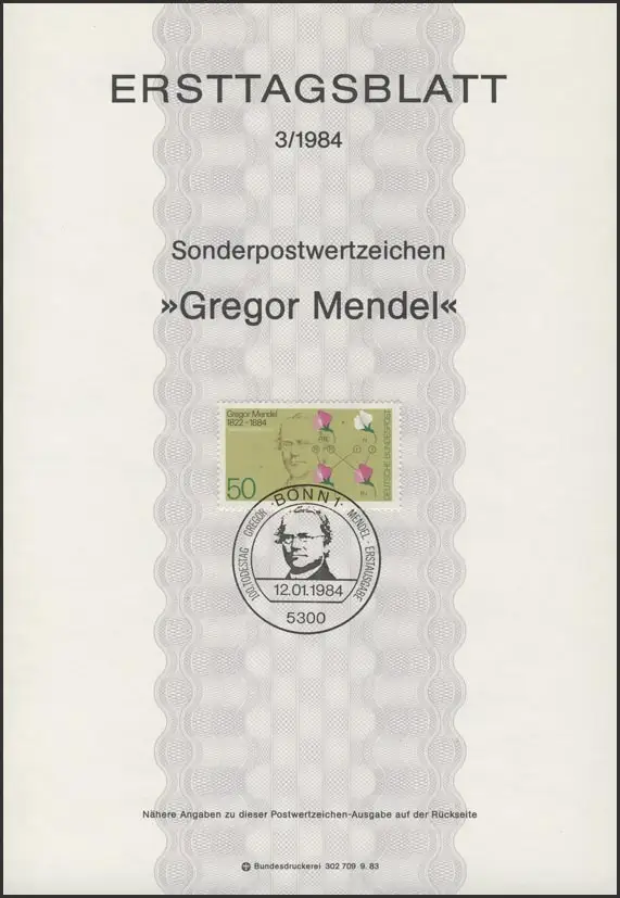 ETB 03/1984 Gregor Johann Mendel, Mönch Vererbungslehre