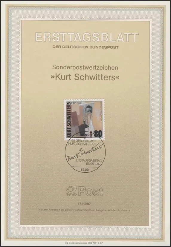 ETB 16/1987 Kurt Schwitters, Maler, Schriftsteller
