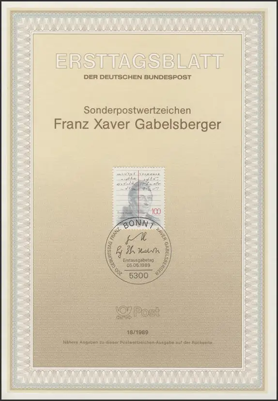 ETB 18/1989 Franz Xaver Gabelsberger, Stenograph