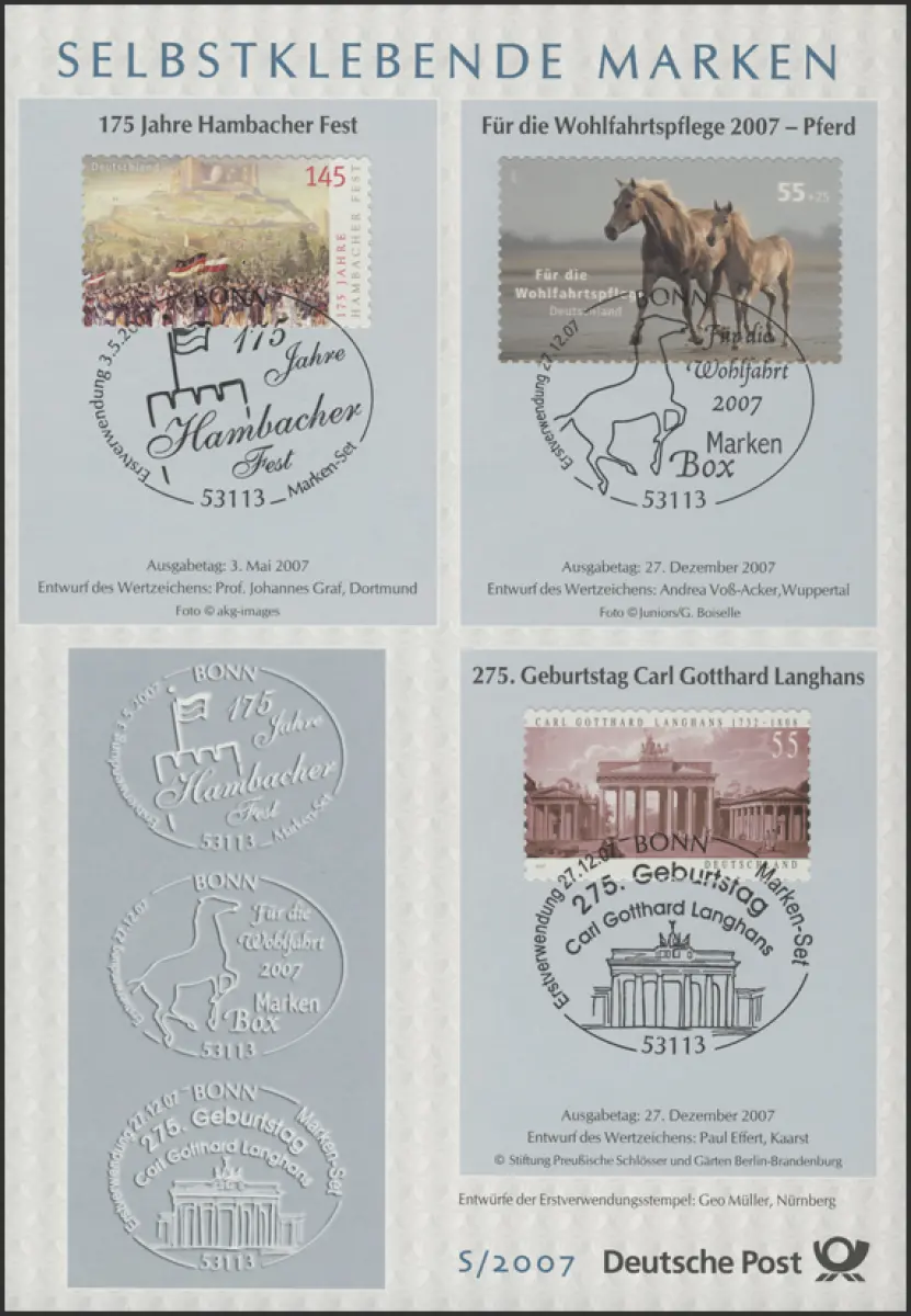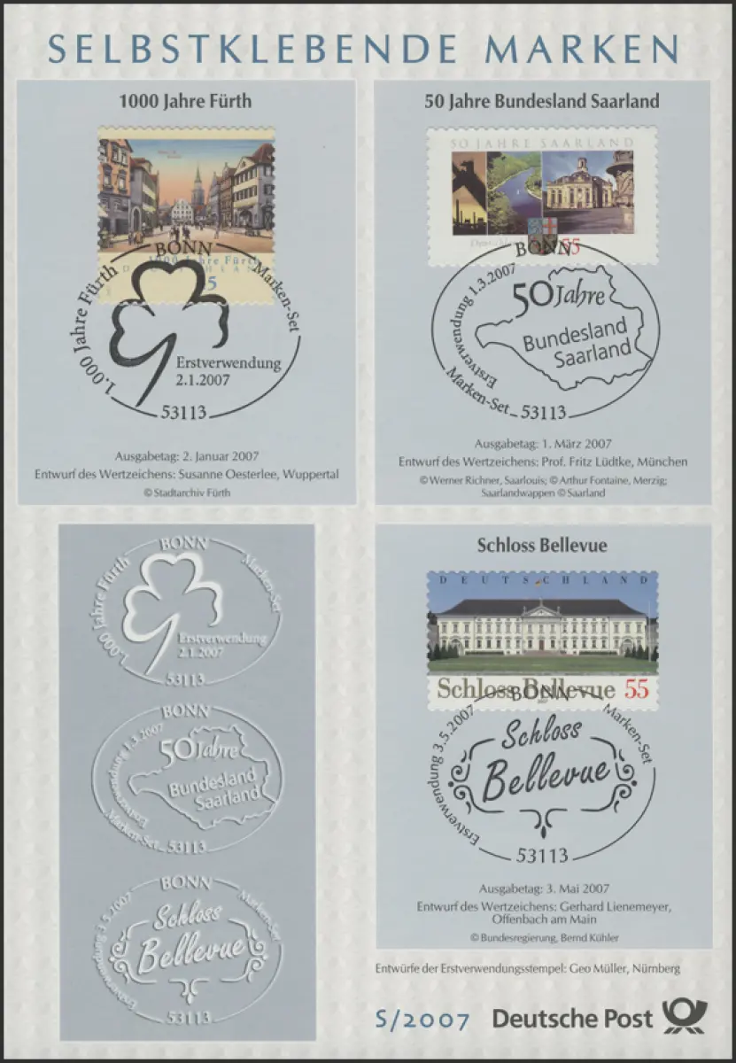 ETB S/2007 Selbstklebende Marken, 1000 Jahre Fürth etc.