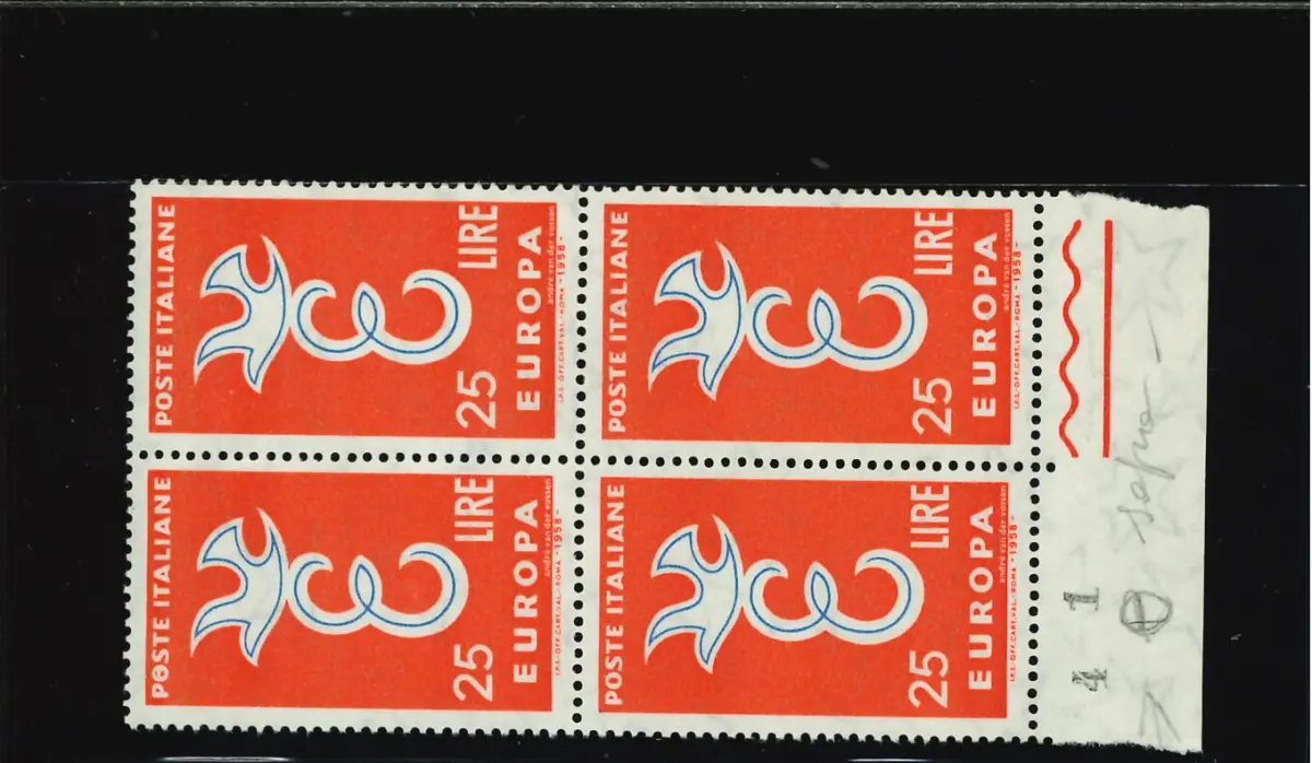 MNH - Vollgummi - EUROPA 25 L. PEST STATT VIERTELBLATTRAND UNTEN - Kat. euro 12 Cod. ITAV_0366
