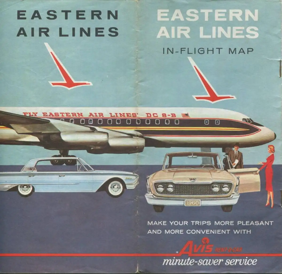 Eastern Air Lines In-Flight Map 16 Seiten 50er Jahre