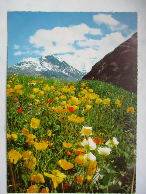 Motiv: Bergwiese, Blumen, Hügel, Schnee. Künstler: M. Mehlig. Verlagsangaben: München, Korsch, 8412.
