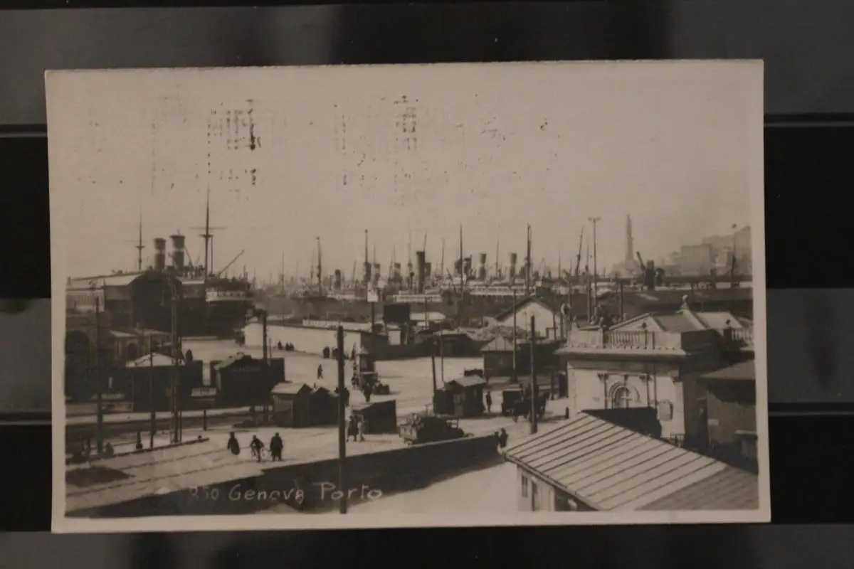 [Echtfotokarte schwarz/weiß] Genua Porto.