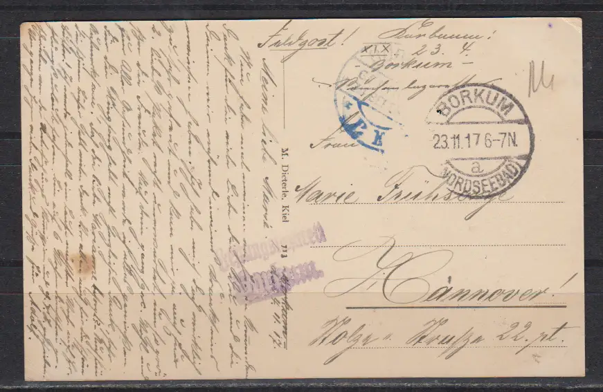 Motiv: Kriegsschiffe /Hafenanlage / Matrosen. Verlagsangaben: Kiel, M. Dieterle, 1917.