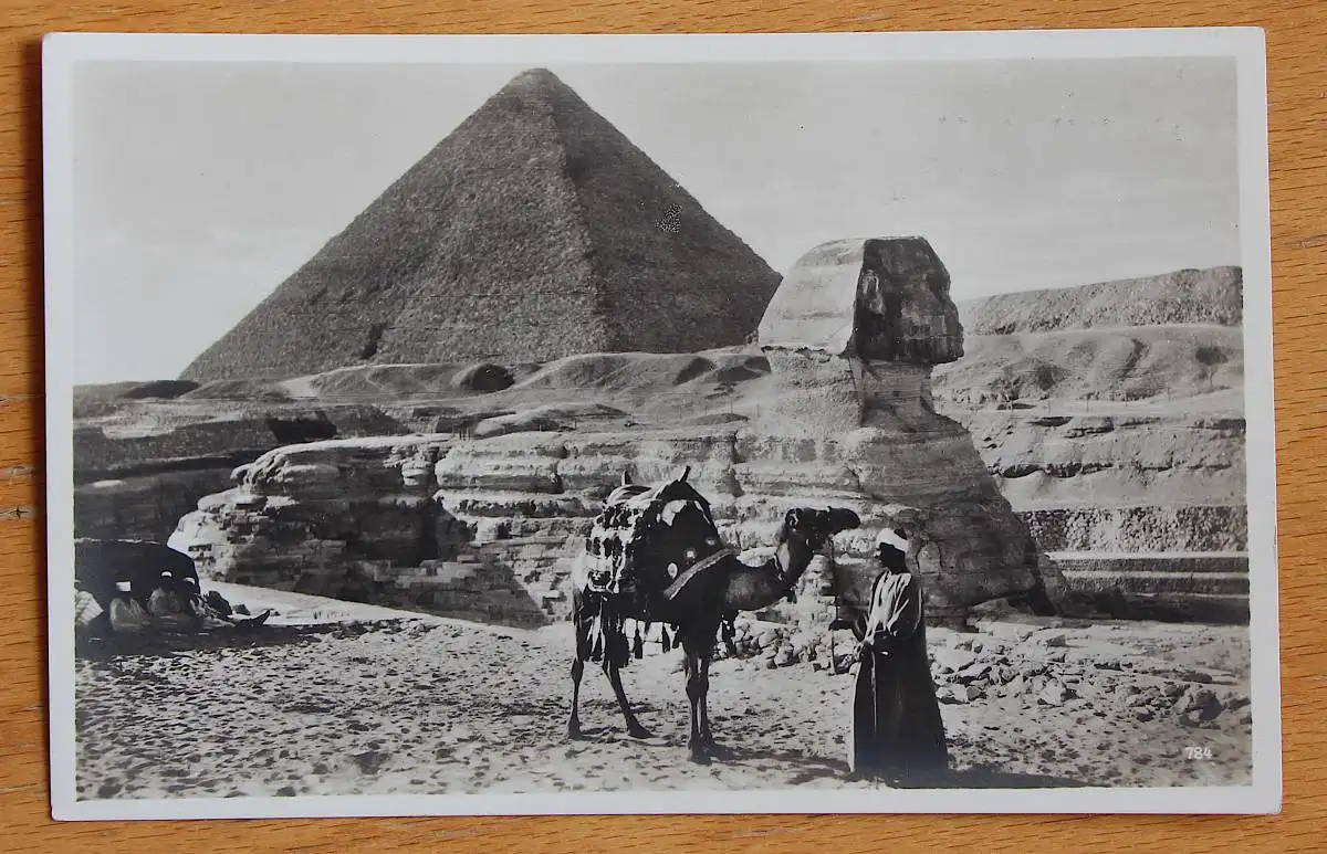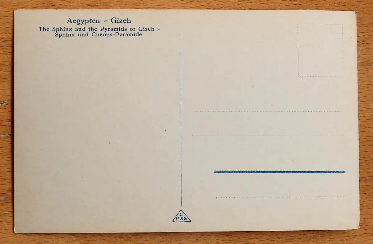 Motiv: Pyramide, Sphinx, Kamel und Führer. Künstler: keine Angabe. Verlagsangaben: Hamburg, CM&S, 1950er ?.