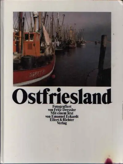 Ostfriesland, sieben Inseln im sonnigen Süden der Nordsee, Wattenmeer, amphibische Wunderwelt, die im Stundentakt des Mondes zweimal am Tag trocken fällt und wieder versinkt, meter hohe Deiche, computer berechnete Bollwerke des Küstenschutzes, auf denen wie in alten Zeiten Schafe weiden, weites Land, saftgrün, wie platt geschoben unter der Wucht des Windes, oft verglichen mit dem fetten Rand eines Pfannkuchens aus speckig schwarzer Erde, der tucheben die Moränenlandschaft der Geest im inneren Ostfriesland einfasst. guter Zustand, Beschreibung vom Antiquariat Ardelt 1a1a ISBN-Nummer: 389234020X Antiquariat Ardelt