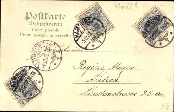 Zustand, siehe Scan, gelaufen, 1902 - ca 14 cm X 9 cm