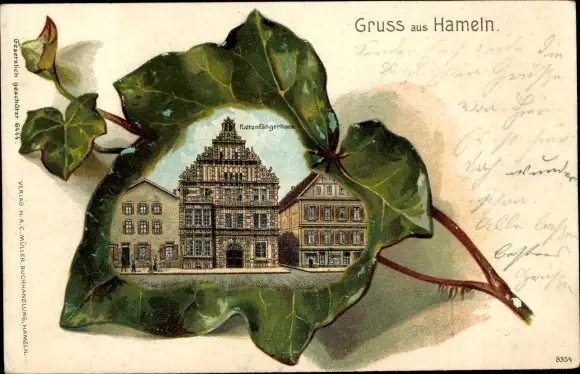 Efeublatt Litho Hameln an der Weser Niedersachsen, Rattenfängerhaus
