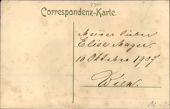 ungelaufen, datiert 1907, Eckknick rechts oben, leicht fleckig, sonst guter Zustand